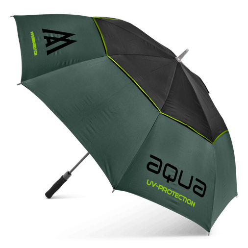 Objevte AQUA UV Umbrella, ideální golfový deštník s velkým průměrem 132 cm, který spolehlivě ochrání před deštěm i sluncem. Speciální UV filtr poskytuje sluneční ochranu SPF 50+, takže deštník můžete použít i jako praktický slunečník na golfovém hřišti.