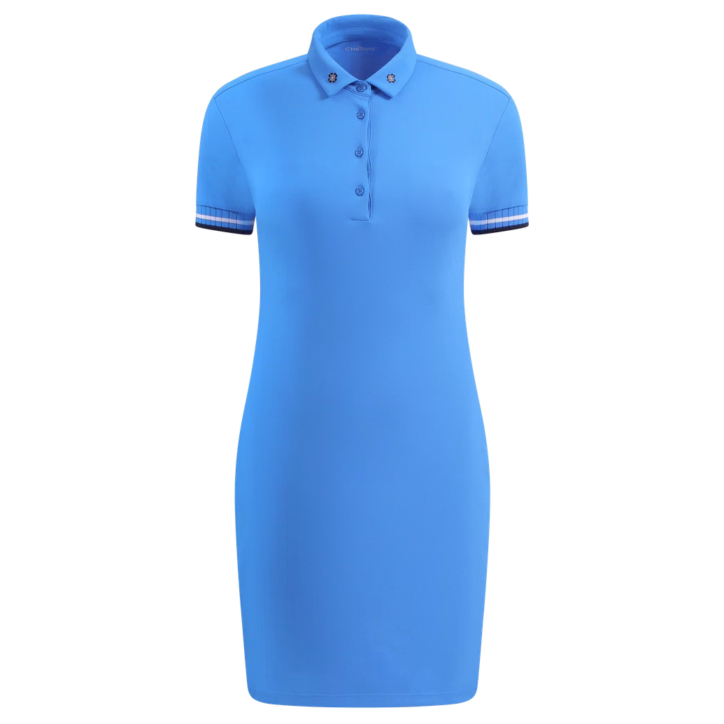 Dámské šaty VIVIANA jsou vyrobeny ze 100% polyamidového piké materiálu s úpravou Dry-Matic® a Sunblock®, který zajišťuje výjimečnou prodyšnost, svěžest a rychlé schnutí, díky čemuž jsou ideální pro nošení během celého roku. Na límci jsou vyšívané dva malé čtyřlístky, které dodávají šatům symbol štěstí. Široké žebrované průramky s dvoubarevnými pruhy spojují styl s pohodlím. Lehký, ale odolný materiál zaručuje pohodlné nošení během celého dne, ať už jde o ležérní nebo polofomální příležitosti.